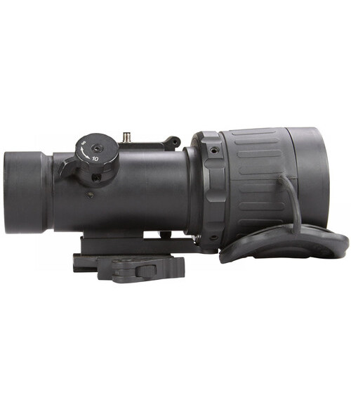 The AGM Comanche-40 NW1 Night Vision Clip-On is designed to mount on a standard Weaver or Picatinny rail in front of a day scope. It transforms your scope for mid-range nighttime shooting with no re-zeroing required. It comes with a quick release mount and can be used with day scopes that have up to 12x magnification for optimal performance in target acquisition.