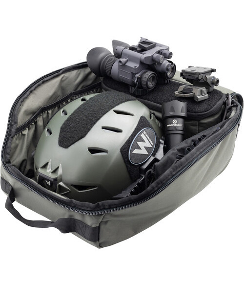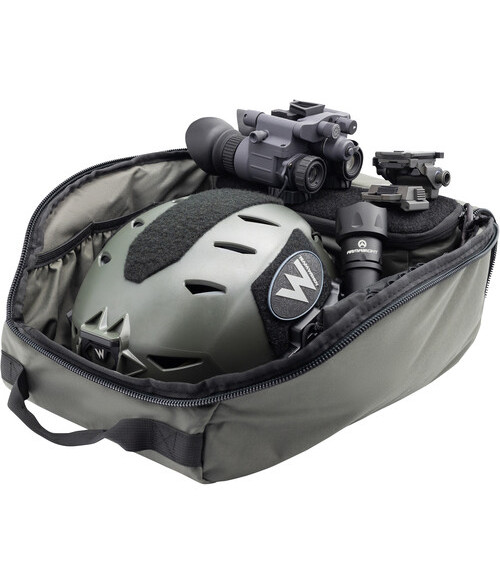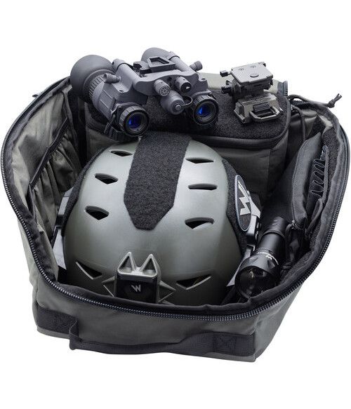 Combining the functions of a hard case and a carry bag, the Armasight Helmet and Accessory Bag is a practical and stylish solution for transporting your Armasight helmet, night vision goggles, and other tactical equipment. Made from 500D Cordura material, it can withstand harsh environments while keeping your contents insulated and secure. The bag includes a padded removable pouch for the goggles, removable dividers for flexible organization, three pockets for small accessories, and a loop panel for strobes and glow patches.