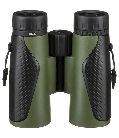 The comfortable ergonomic chassis is made of a fiberglass-reinforced polycarbonate to help reduce weight without sacrificing strength. It also adds impact and temperature resistance. Being resistant to temperature changes ensures the housing remains a constant temperature, even in cold and wet conditions. It will not experience the expansion and contraction common in metal chassis that can cause the optical elements to move out of alignment over time and hinder the binoculars' ability to achieve sharp focus. The chassis is covered in a green rubber armoring that helps to protect them from drops and impacts and provides a slip-resistant grip.